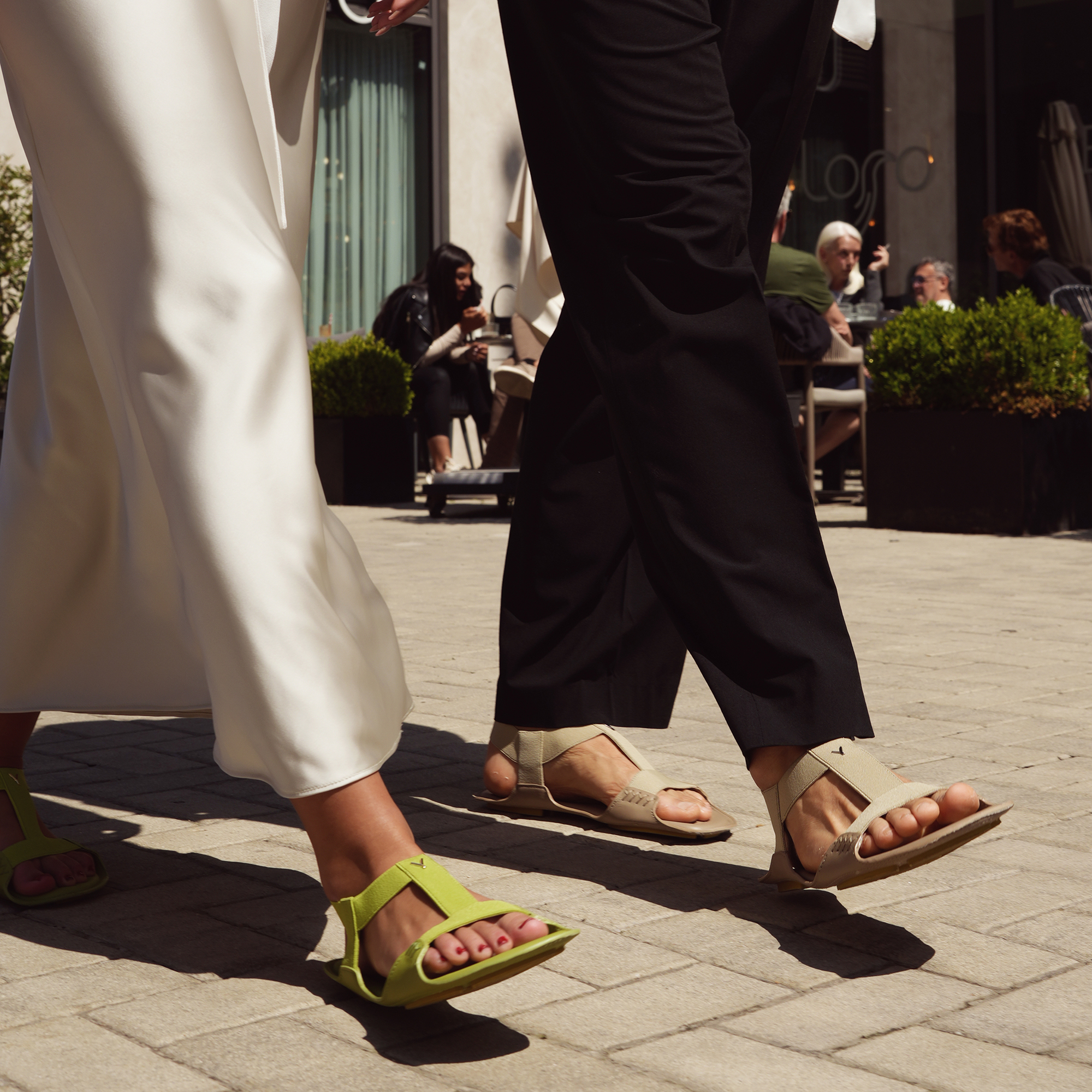 Stvorene da ti baš legnu, prosto upakuju stopalo. To se postiže izvrnutom konstrukcijom same sandale, i pažljivim odabirom materijala. Posebno oblikovan đon sa fleksibilnim segmentima, umetnut i prošiven izmedju dva sloja vrhunske kože, omogućava prirodan i stabilan korak, stvarajući osećaj da si bos(a).